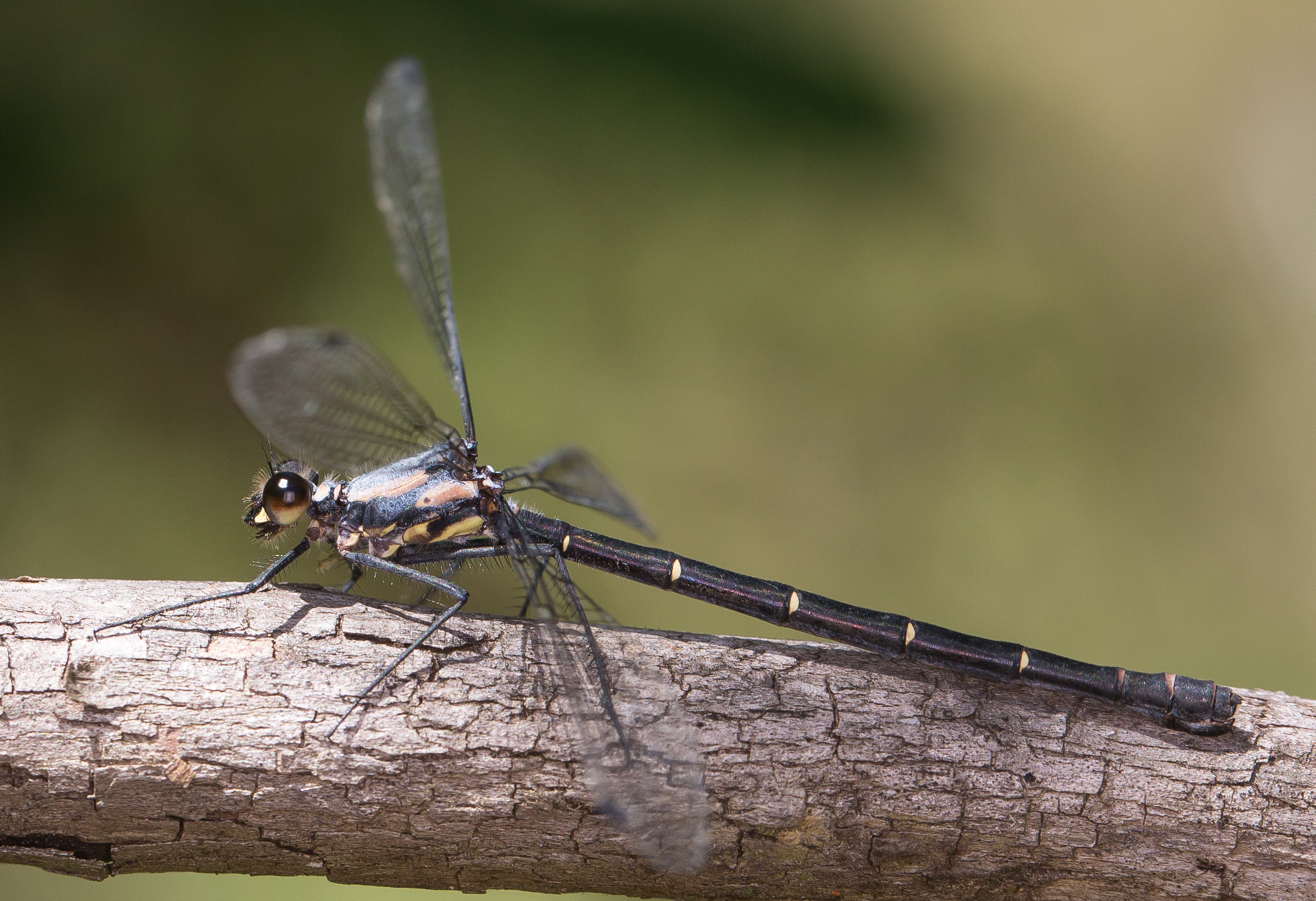 This Female Milky Flatwing was at the edge of a dam waving its abdomen up and down. I am not sure why it was doing this as I could not see any other Milky Flatwings around that it could have been signalling to. Perhaps it was just having a stretch.