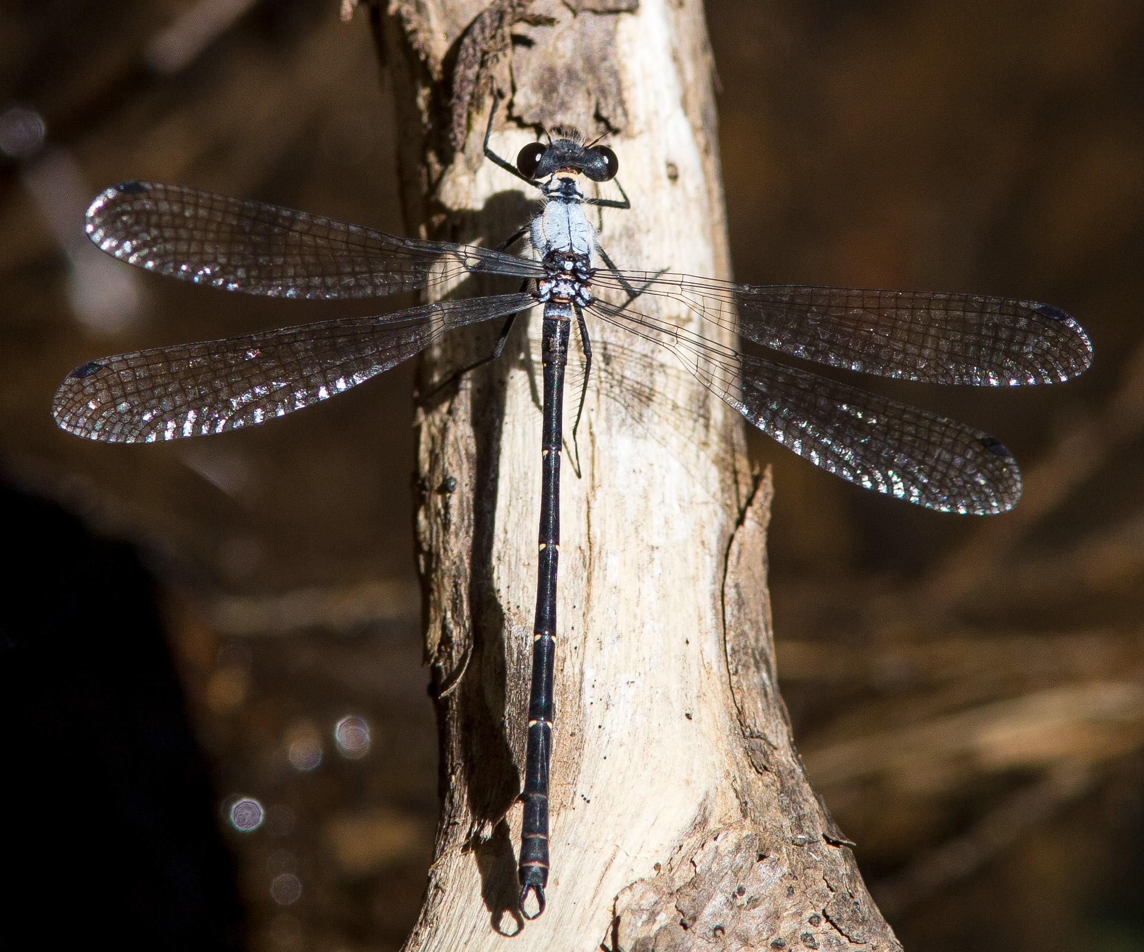 Austroargiolestes christine like Austroargiolestes alpinus is another uncommon damselfly found around Deer Vale NSW. My first sighting in October 2011, was of a male which had landed on some grass just down the hill from our house and was not close to any water. It was a teneral which I presume had moved away from its hatching site to mature.