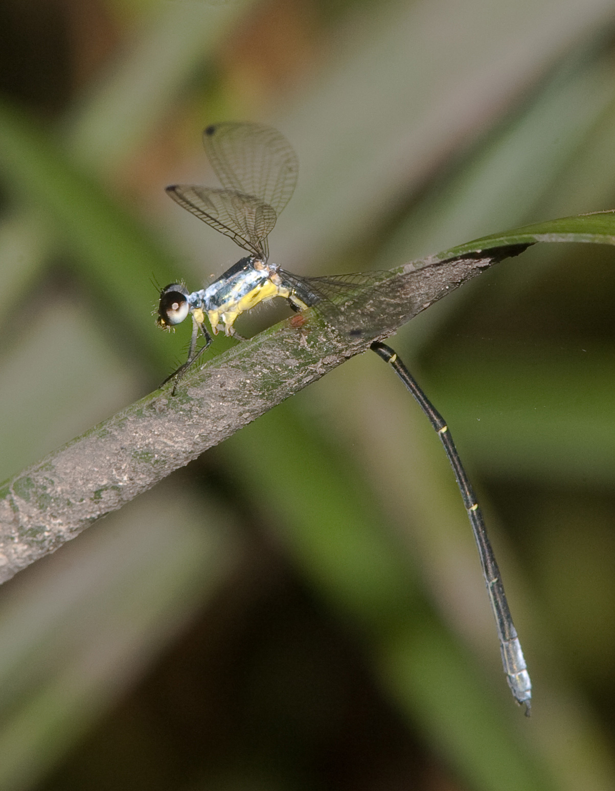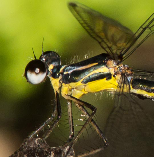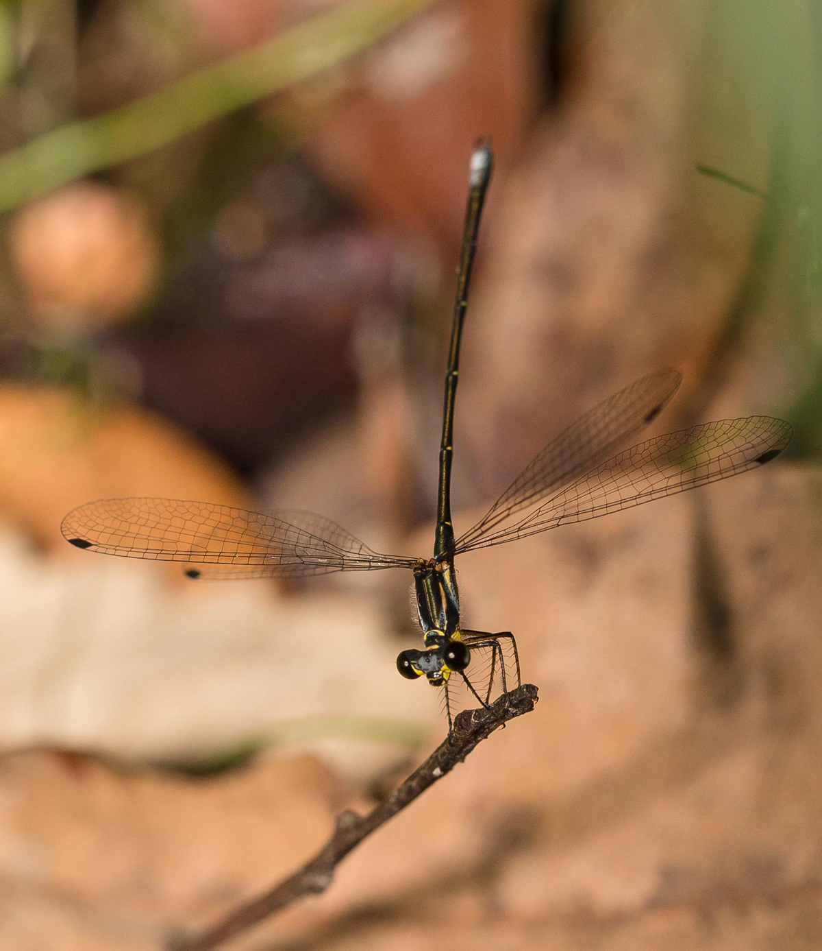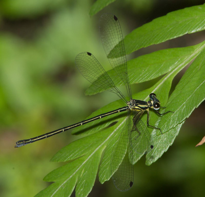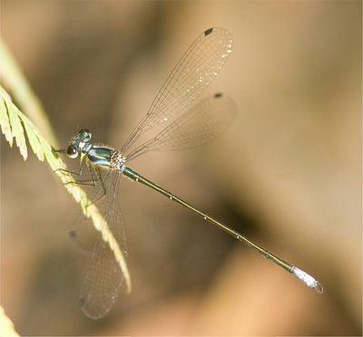 The coastal Flatwing is much more petite than the Common Flatwing Austroargiolestes icteromelas.