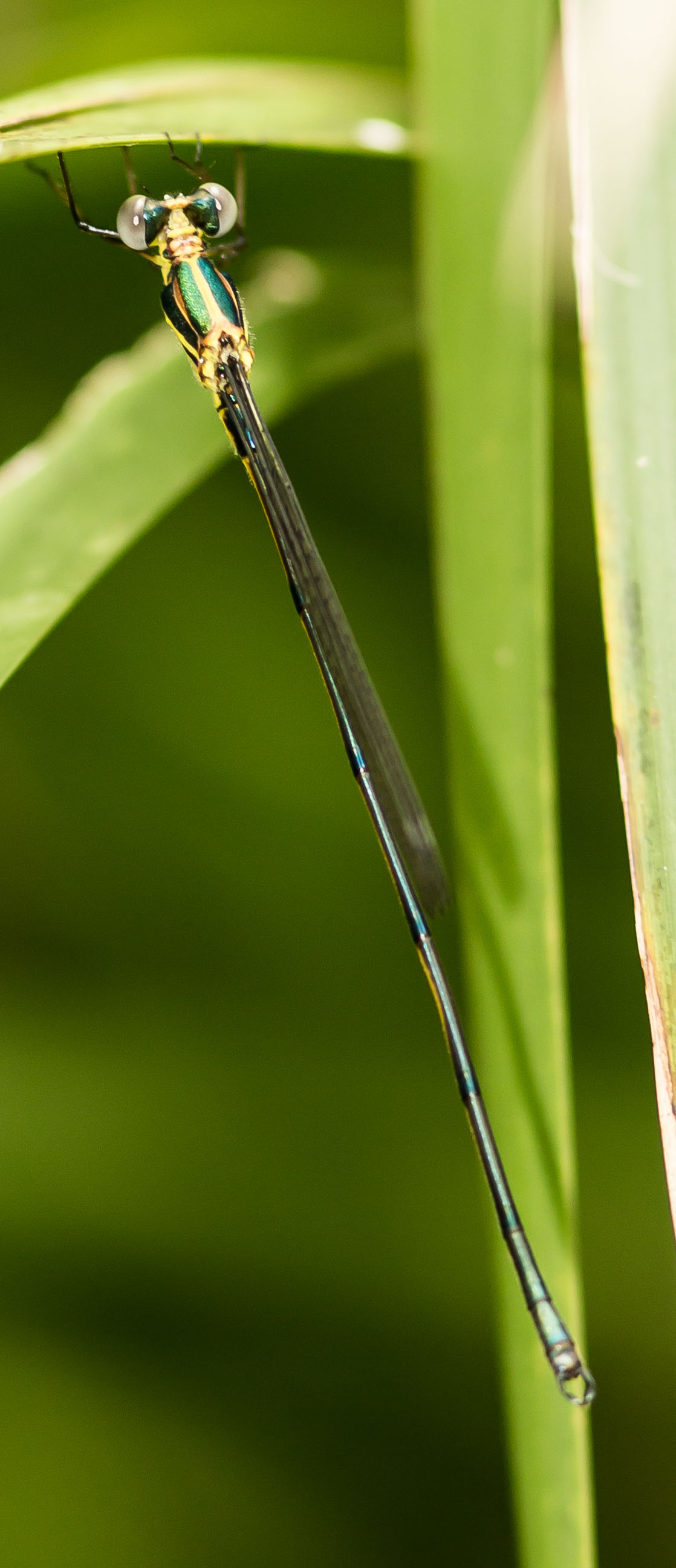Synlestes selysi is an enigmatic damselfly. Unlike Synlestes weyersii the Bronze Needle, which can be found in large numbers along the creeks it inhabits, Synlestes selysi is difficult to find and from what I have seen it tends to lurk in the shade.
