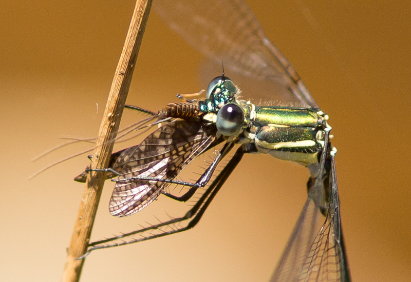 I was lucky to see a pair of Bronze needles mating and subsequently the female laying eggs, as this has rarely been recorded. The male guarded the female while she laid.