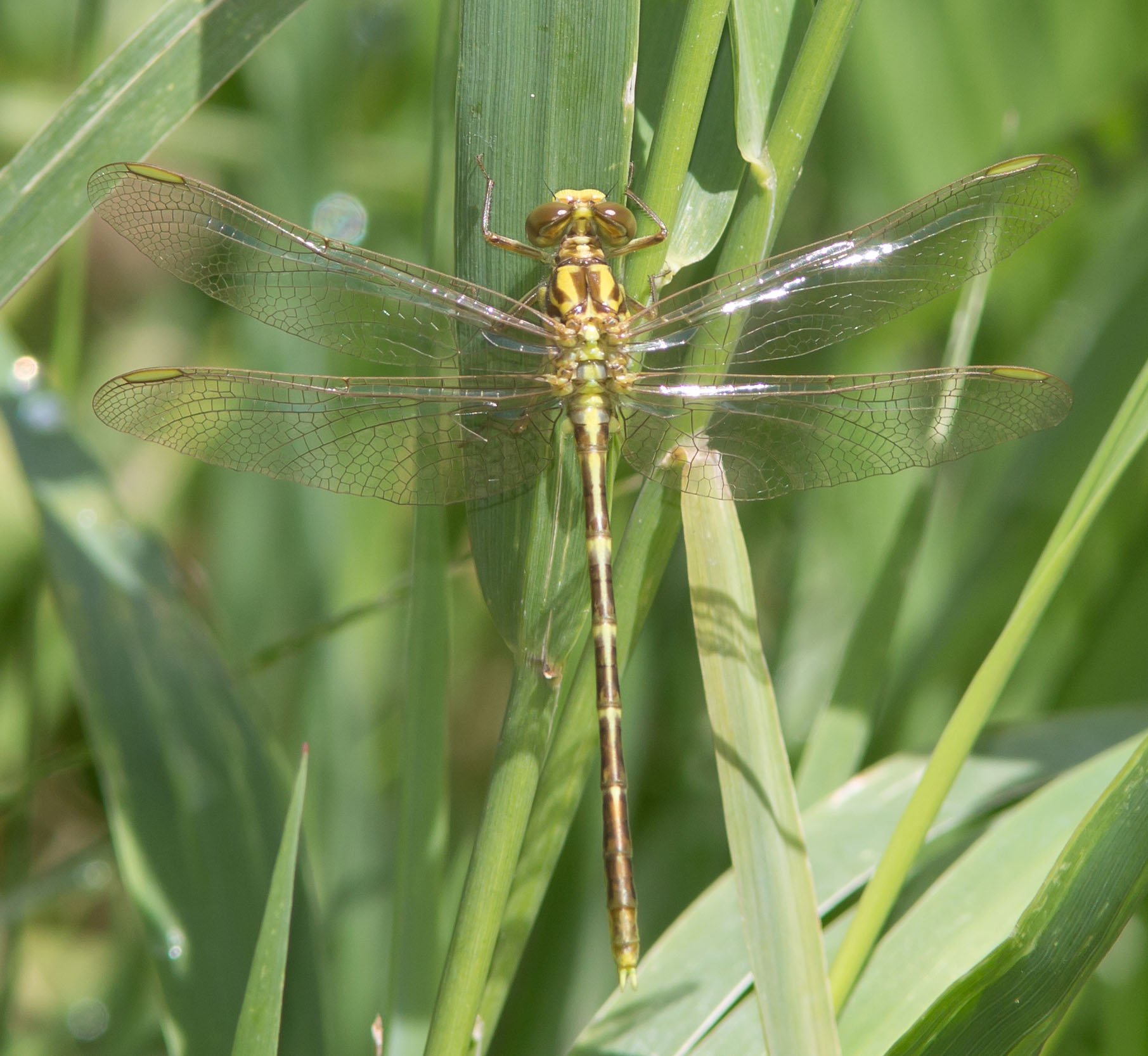 Both male and females look similar but differences include angular wing bases in the male and rounded ones in the female, the clubbed end of the abdomen in the male while the females abdomen is almost straight, and the superior anal appendages being close together in the male and separated in the female.