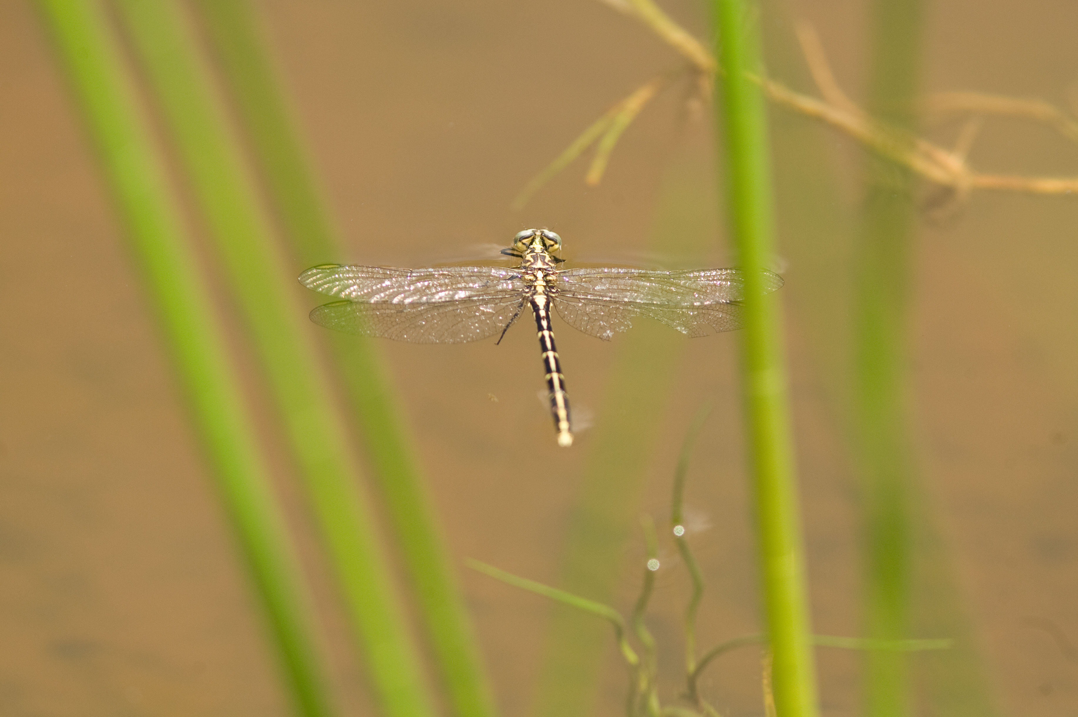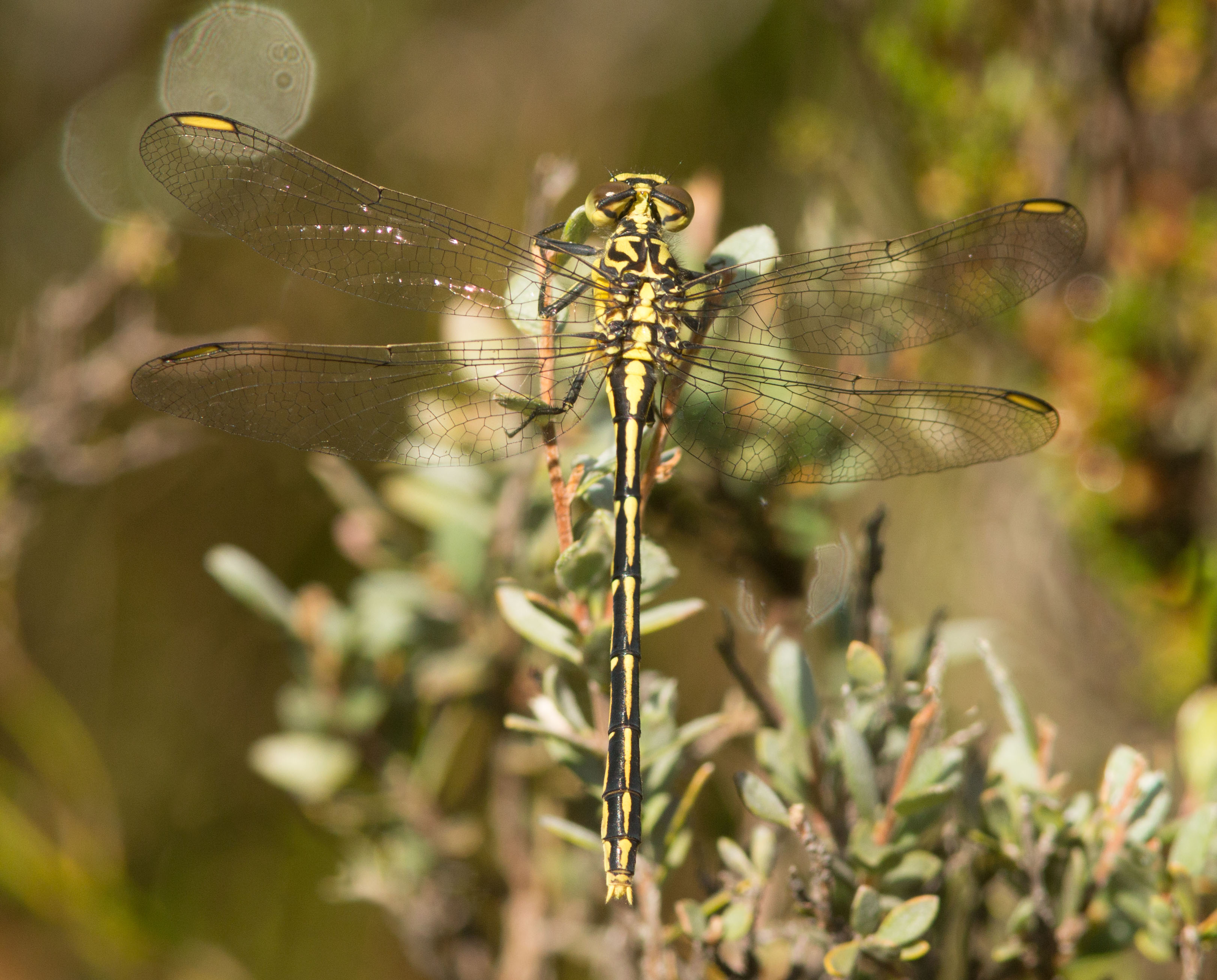 The Yellow-striped Hunter is a small dragonfly that even though quite brightly coloured, can be difficult to spot until it moves. It can be seen perched on emergent rocks in creeks and rivers.
