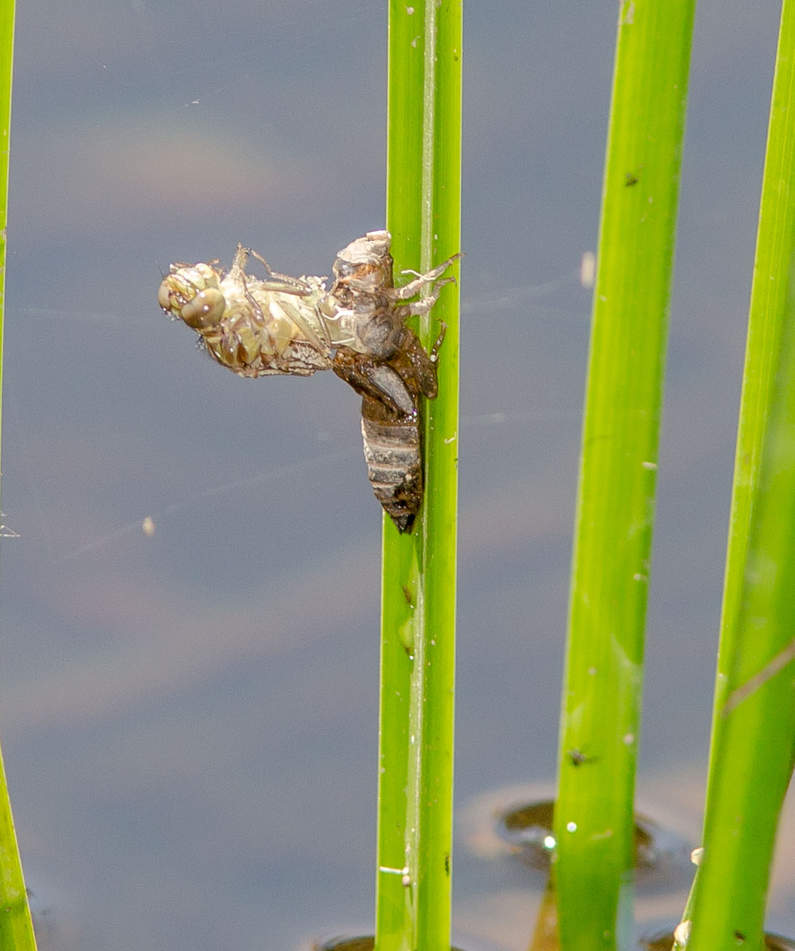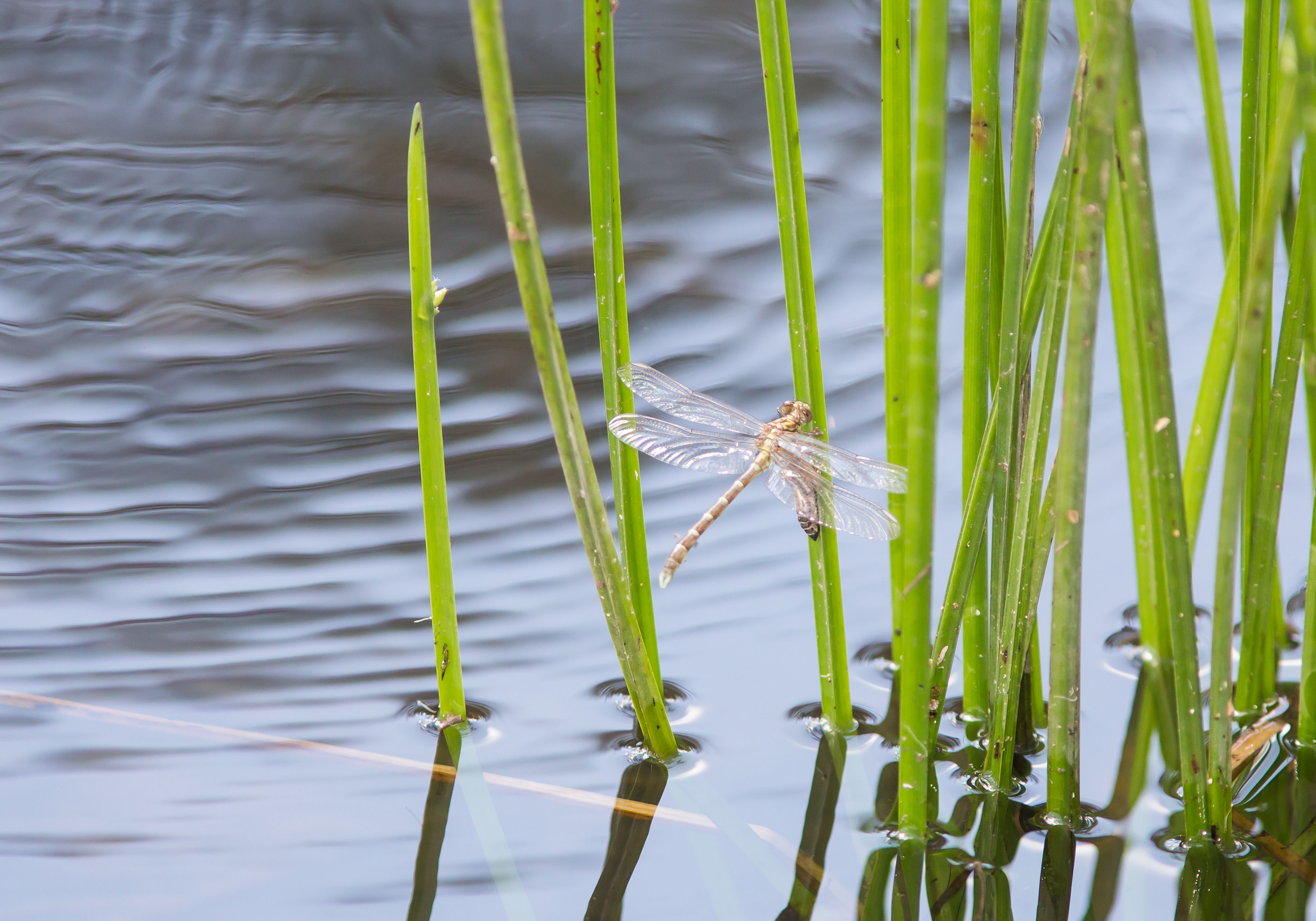 We went to an agricultural field day along the Forbes River Rd inland from Wauchope NSW in November 2013. Of course I had to go and check out the river which we had to drive across to get to where the field day was being held. Much to my delight there was a dragonfly emerging from its larval case at the edge of the river. Within 25 minutes it was fully hatched with its wings fully expanded. it fell in to the water but fortunately managed to scramble to another stem and climb to safety. This teneral dragonfly turned out to be a Southern Vicetail.